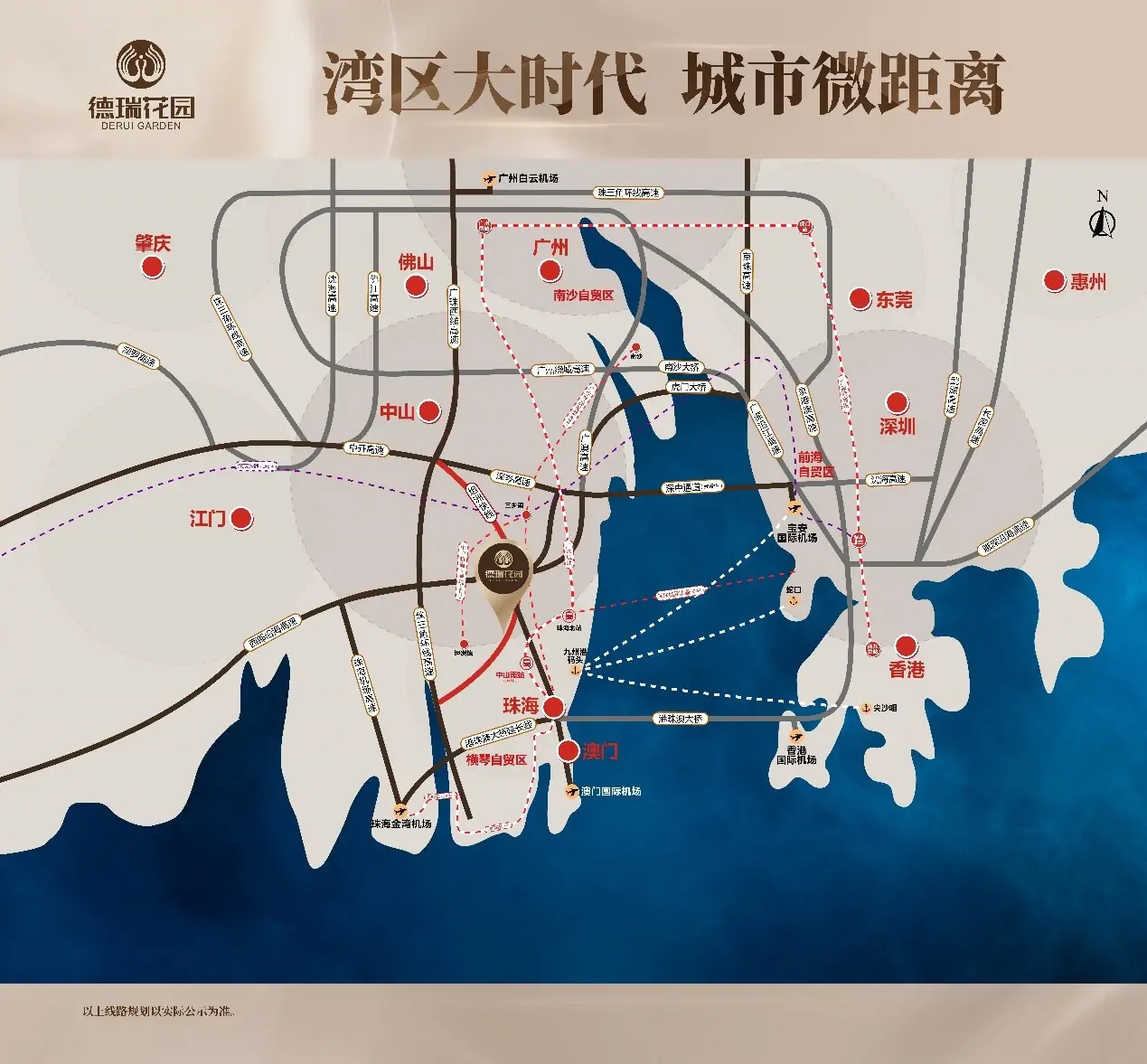 10分鍾中山南站(在建),實現60分鍾全灣區生活】 項目位于香山新城核心區,距離將建設新高鐵站--中山南站僅5公裏,未來將會與廣中珠澳高鐵、南中珠城際(廣州地鐵18號線南延線)、深珠城際(規劃)三軌交彙,可以極速通達珠海、廣州、深圳等灣區各城市!